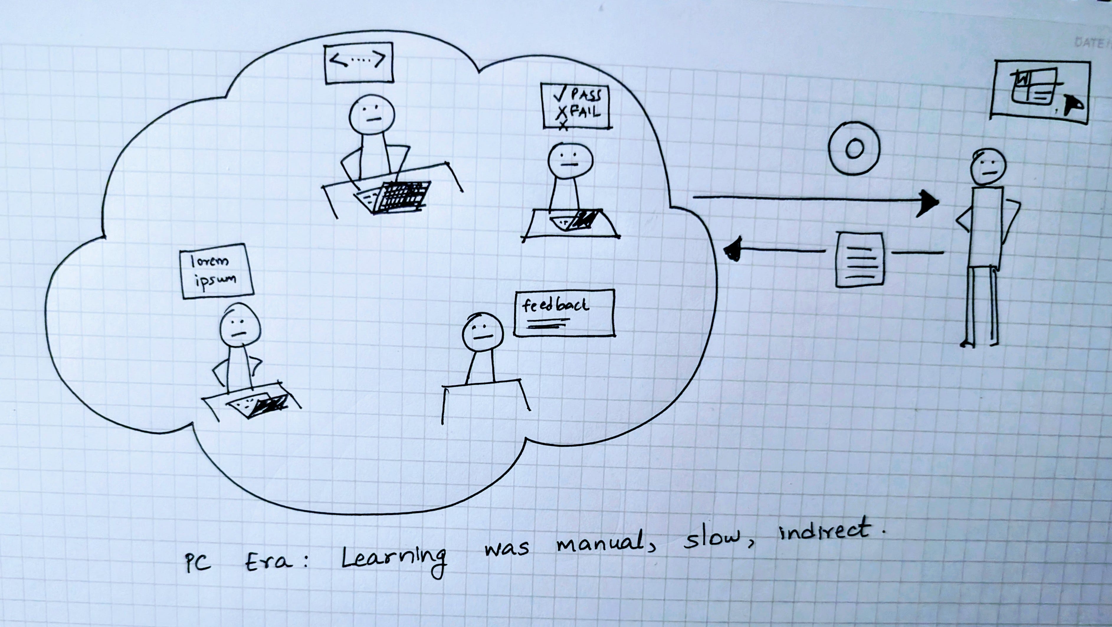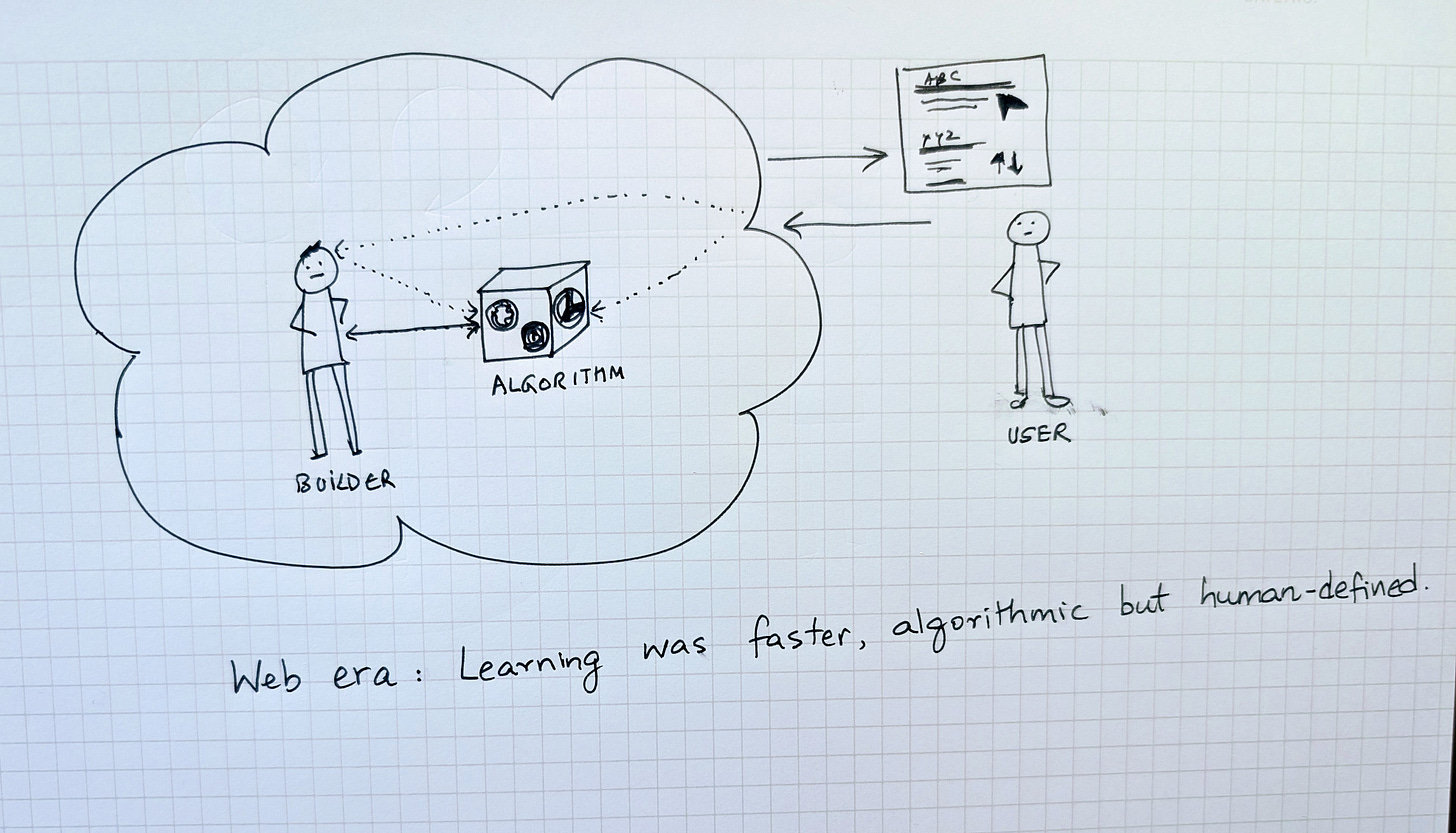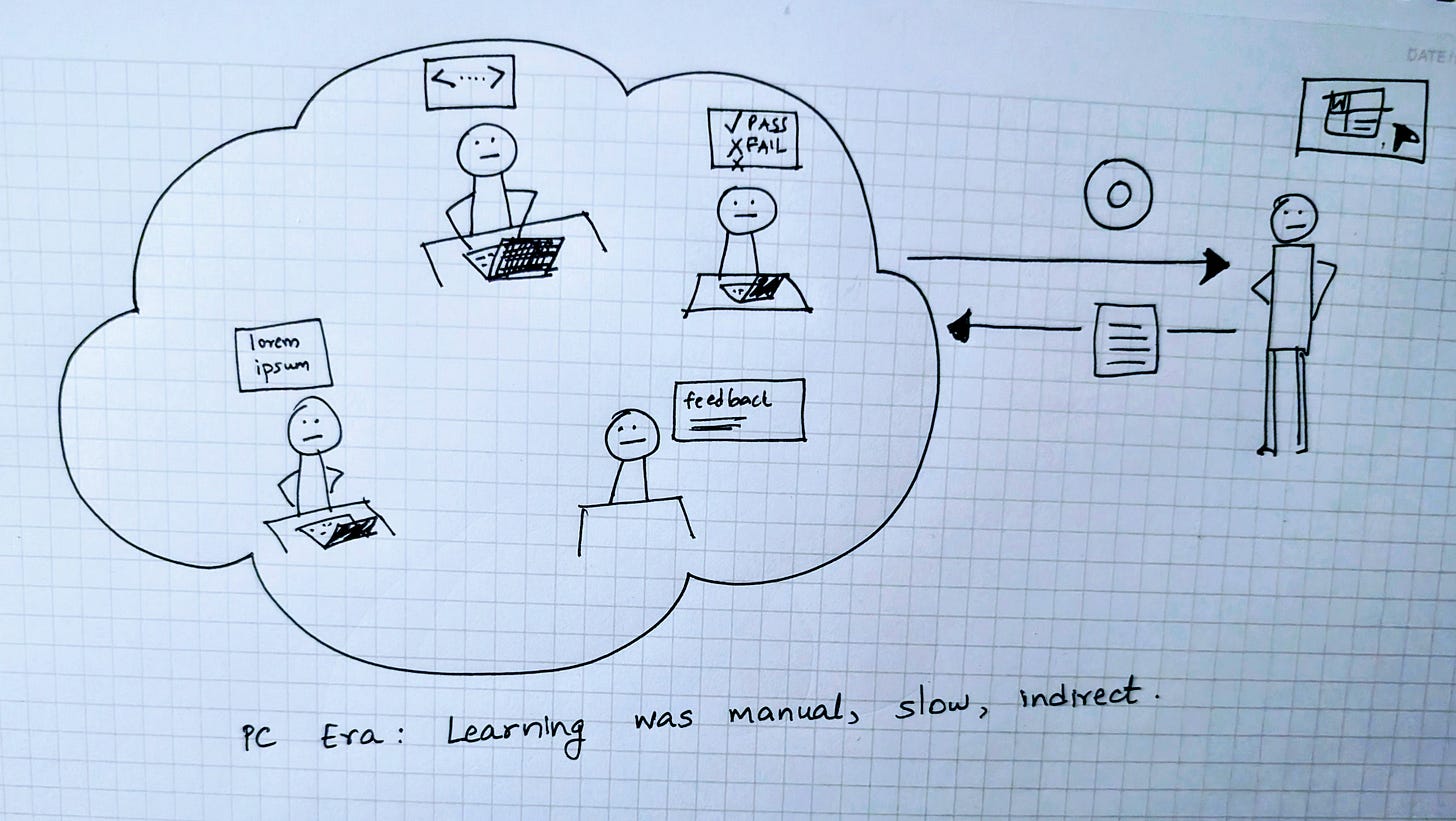 In the PC era, learning was slow and sequential. A bug had to be reported, fixed, tested, and shipped. The web introduced feedback that was continuous and machine-readable. User interactions could be logged automatically, aggregated, and analyzed. The learning loops became programmatic instead of manual.