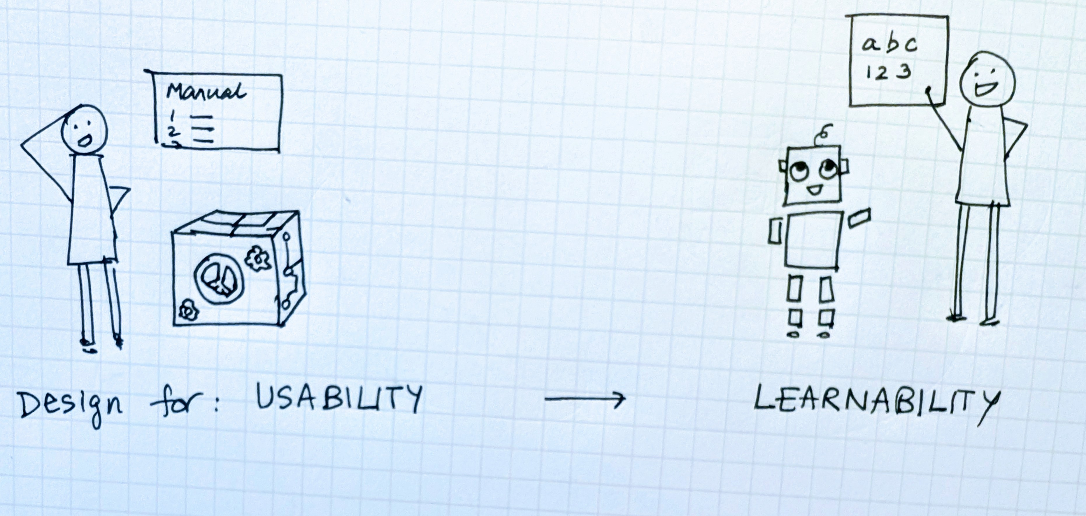 With AI products, UX design has an equally important other goal of learnability, teaching products how to learn from people.