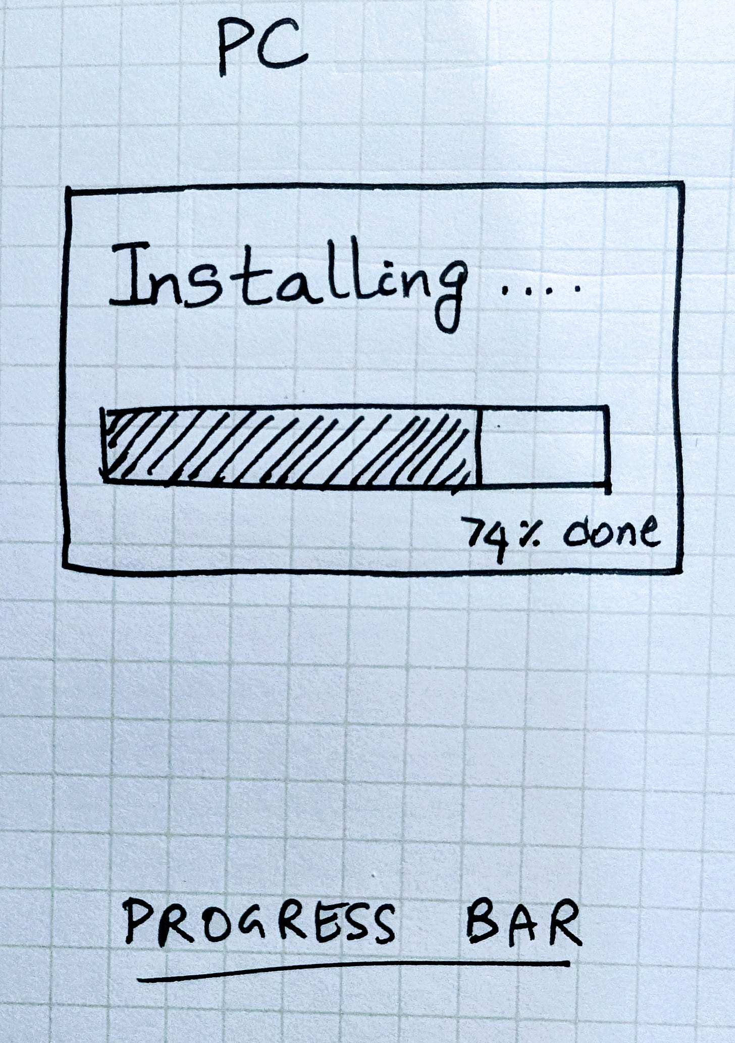PC era → the progress bar. Watching a bar creep forward made invisible computation tangible.