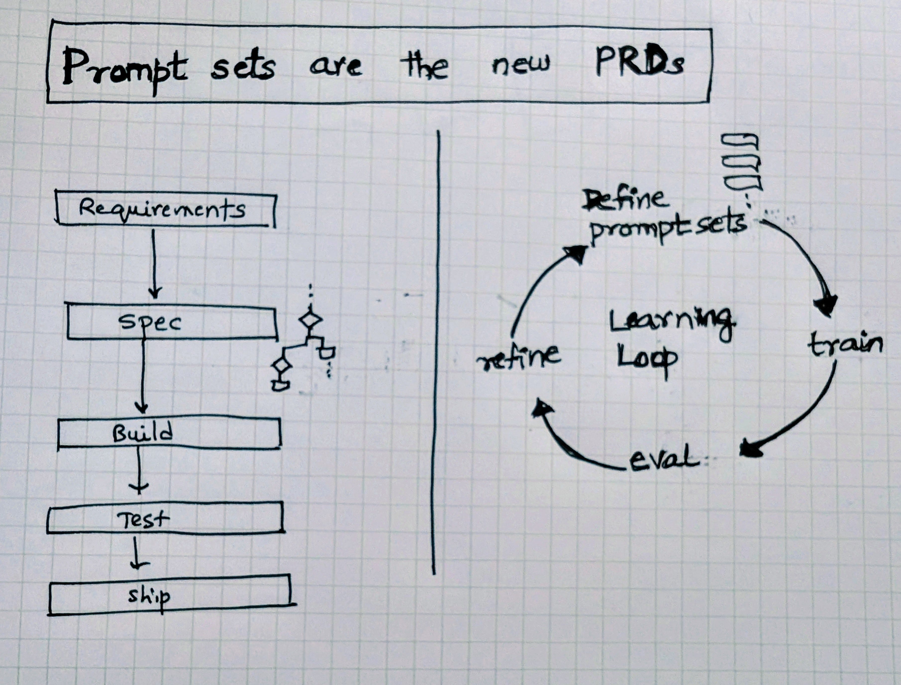 Traditional PRDs were written for programmers. They locked requirements down in advance, then handed them off to be built. Prompt sets work differently. They are living artifacts: part specification, part training data.